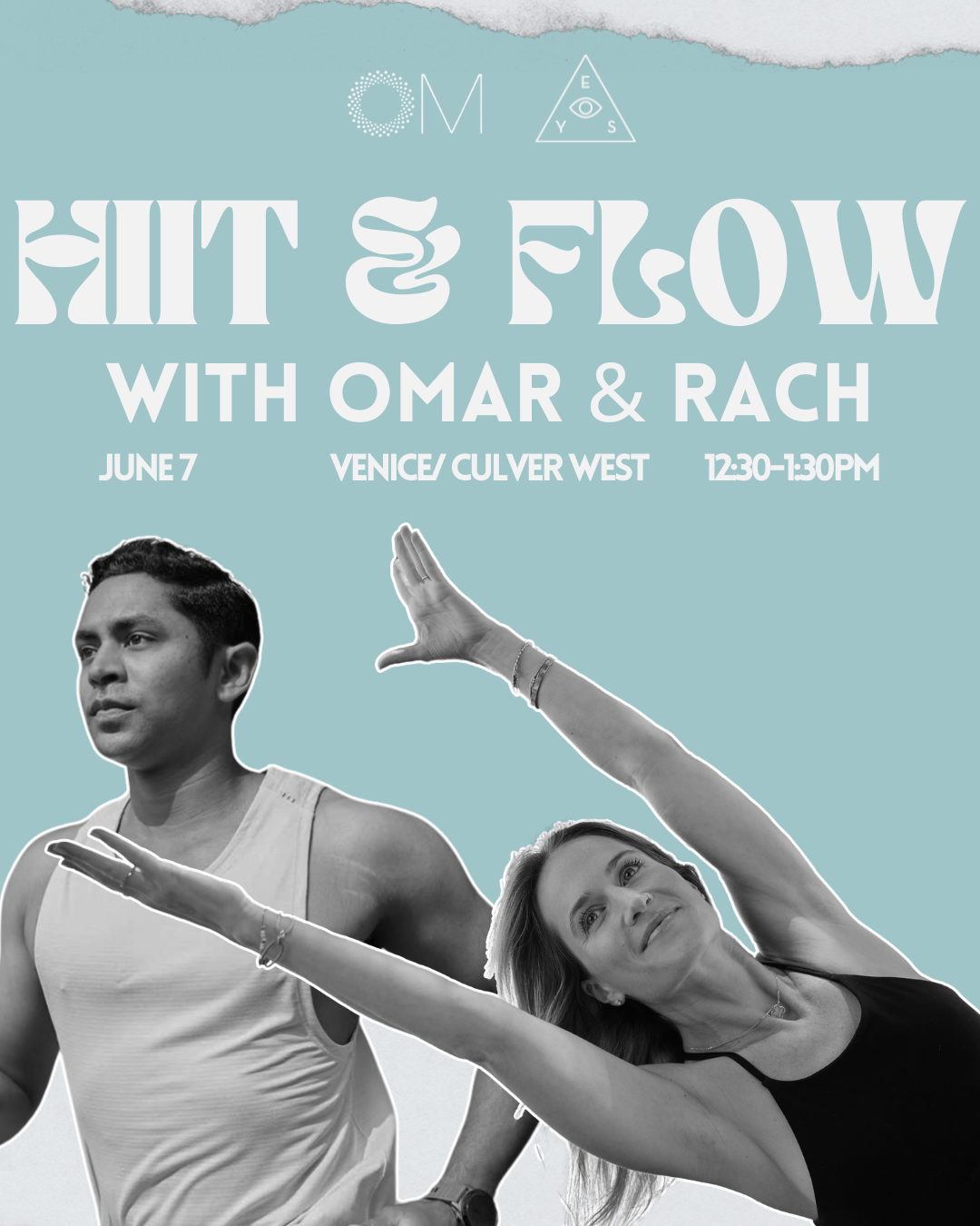 HIIT & FLOW by Omar & Rach! Join us for an energizing workout session at Empowered Yoga Studio. Get ready to sweat it out with high-intensity interval training (HIIT) followed by a relaxing flow session.
